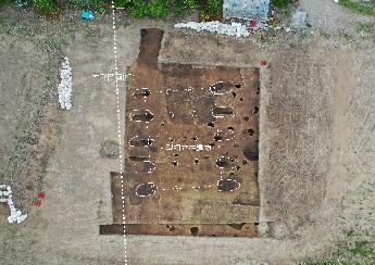 令和元年度に行った発掘調査では、南北8m、東西5.6mの大型掘立柱建物が発見され、居館の内部が明らかとなりました。