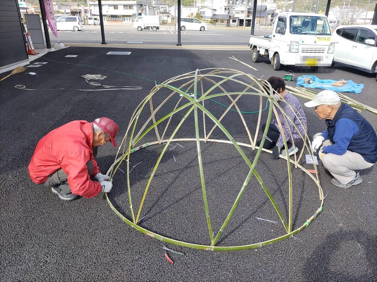 幅が広く曲げにくい竹の資材は、みなさんのアイデアで別のイルミネーションに!