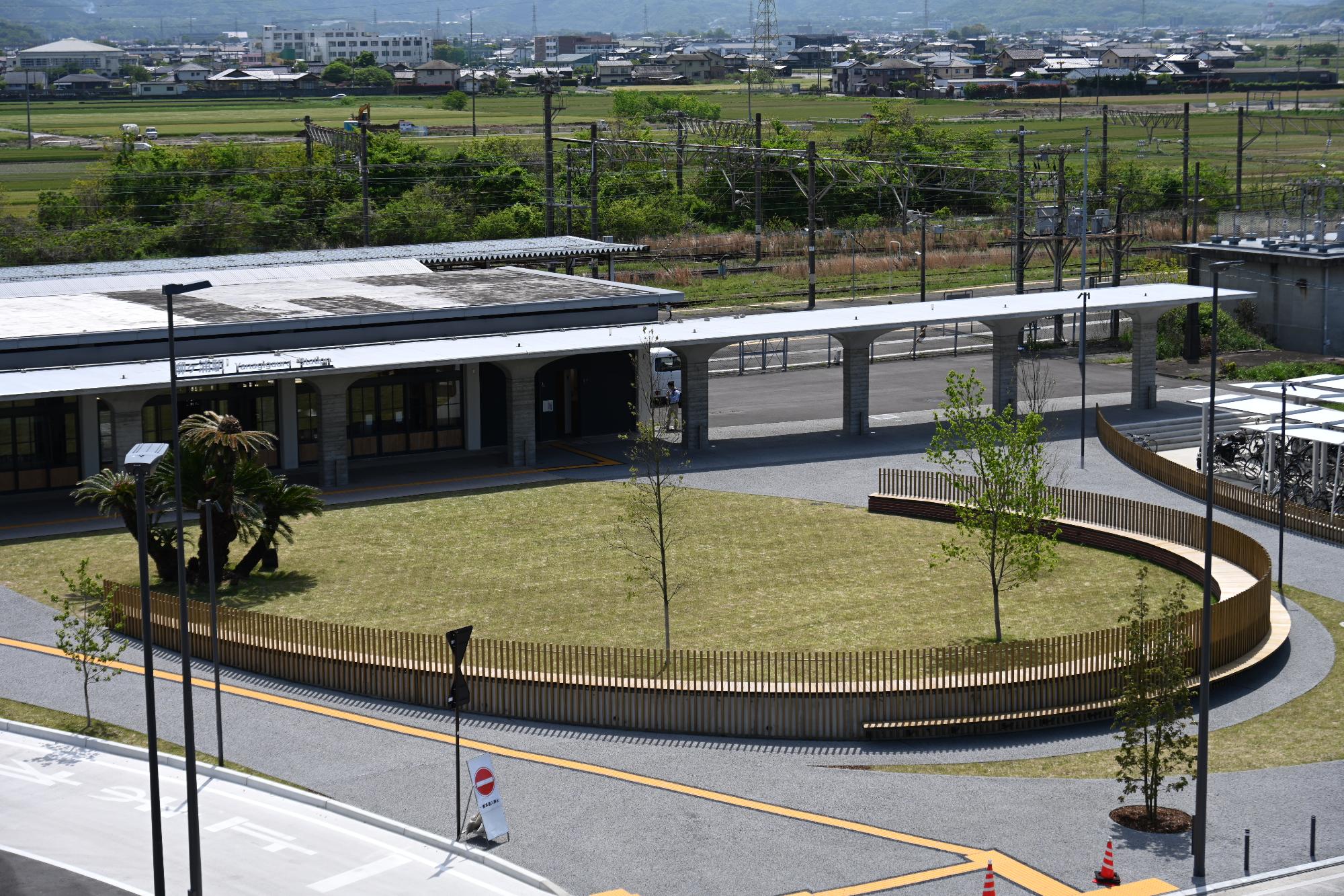 令和3年度からは駅前整備に着手し、憩いの広場やシェルター、駐輪場の設置等、令和5年度に完成しました。