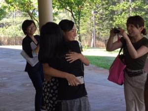 友だちとお別れのハグ 今日までありがとう