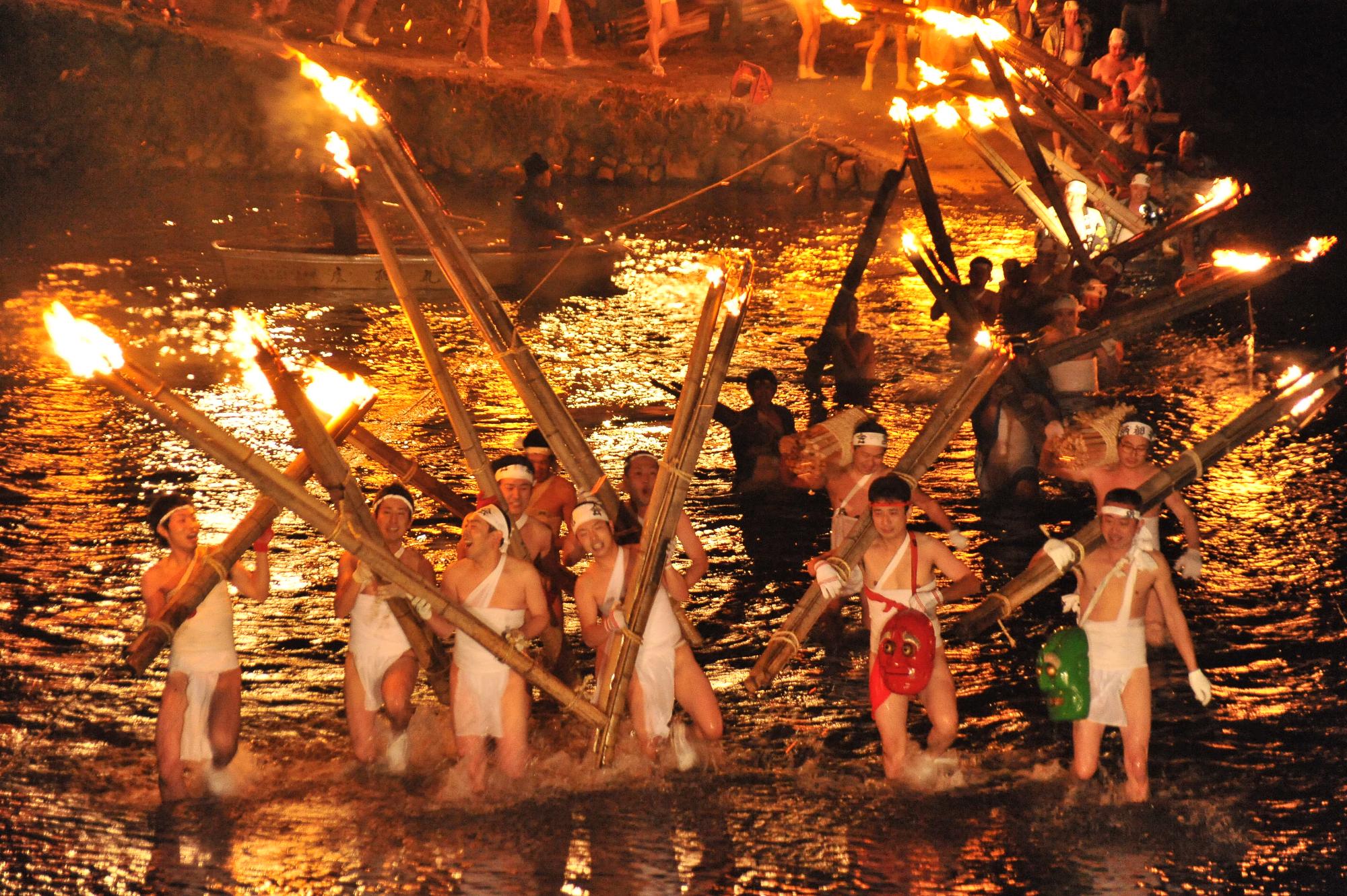 毎年1月4日、松明を掲げた締め込み姿の男衆が観音寺から駅館川の対岸へ渡り、松明をたたき合って無病息災と五穀豊穣を祈願する行事『鬼会(おにえ)』が行われます。